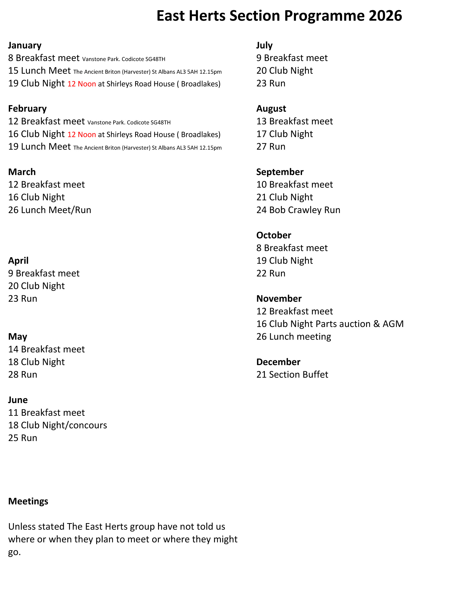 This is not a Sunbeam MCC Ltd. closed event, so please ask any non-club members, if they would like to join us. All are welcome.